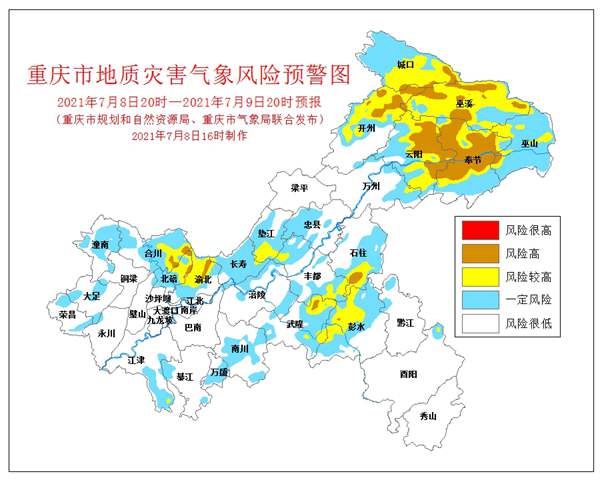 人民網(wǎng)重慶7月8日電 7月8日16時,重慶市規(guī)劃和自然資源局、重慶市氣象局聯(lián)合發(fā)布全市地質(zhì)災(zāi)害氣象風(fēng)險預(yù)警。