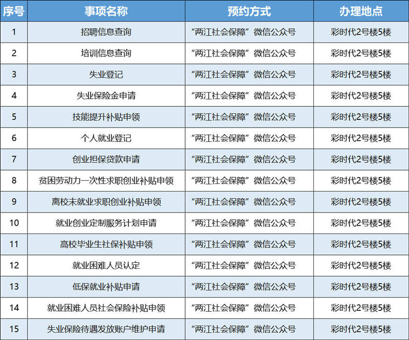 據(jù)介紹,從7月9日開始,兩江新區(qū)社會保障系統(tǒng)將在每周六上午9:00至12:00坐班,為轄區(qū)直屬8個街道范圍內(nèi)的企業(yè)、群眾提供預約辦理就業(yè)創(chuàng)業(yè)、社會保險、醫(yī)療保險、社會組織、殘疾人幫扶、退役軍人等方面共100項高頻民生服務事項。