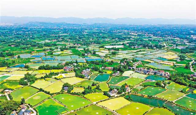 從空中俯瞰梁平漁業(yè)園區(qū)核心區(qū),魚塘稻田縱橫交錯(cuò),詩畫般的田園美景宛若“江南水鄉(xiāng)”。通訊員 熊偉 攝/視覺重慶