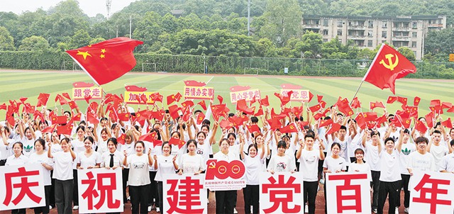 重慶三峽醫(yī)藥高等專科學校在畢業(yè)典禮上舉行了800人合唱的《沒有共產黨就沒有新中國》快閃活動,全體畢業(yè)生重溫了李大釗的名篇《青春》,以青春的名義向祖國宣誓:“請黨放心,強國有我!”