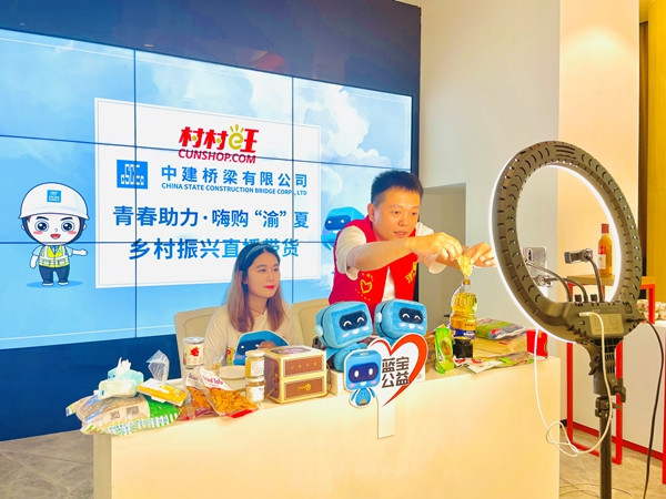“青春助力·嗨購‘渝’夏”鄉(xiāng)村振興直播帶貨活動,依托“村村旺”市級農(nóng)村電商綜合服務平臺,為消費扶農(nóng)賦能。來自中建橋梁的4名青年志愿者,以“一主播+一青年”的形式,助銷重慶各區(qū)縣特色農(nóng)產(chǎn)品。