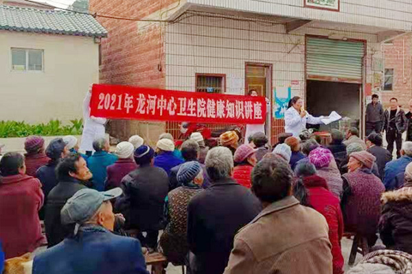 醫(yī)務(wù)人員下鄉(xiāng)舉辦健康知識(shí)講座。龍河中心衛(wèi)生院供圖