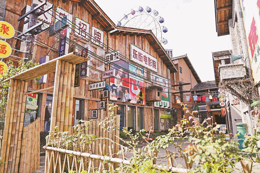 舊物件、老照片里能瞥見過去,糖畫扎染葫蘆燈里能感受傳承,巨大的摩天輪則連接著過去和未來。保留原有城市空間肌理和文化記憶,“修舊如舊”再造而成的東街,讓不少南川老人感嘆:生活了多年的老街變成了景區(qū),記憶中的東街又回來了。如今,東街已入選重慶10強新地標,自年初開街至今,吸引市內外游客400萬余人次。
