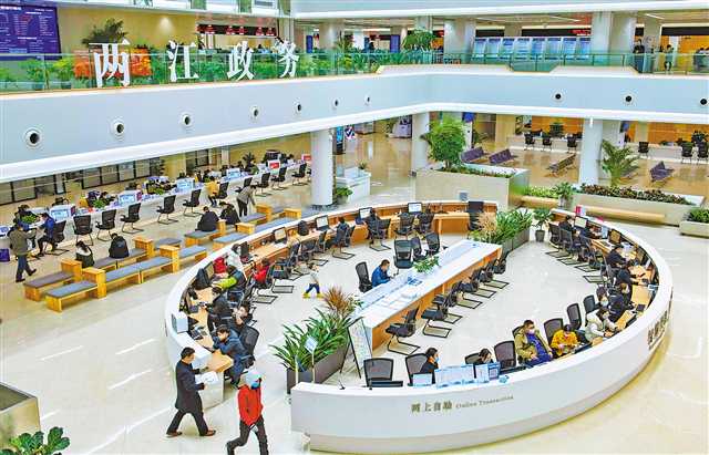 在兩江新區(qū)(自貿(mào)試驗(yàn)區(qū))政務(wù)大廳,市民在各個(gè)區(qū)域有序辦理業(yè)務(wù)。該政務(wù)大廳為市民提供包括不動(dòng)產(chǎn)登記、社保、社會(huì)事務(wù)等1003項(xiàng)事務(wù)的“一站式”政務(wù)服務(wù)。(資料圖片)記者 張錦輝 攝/視覺重慶