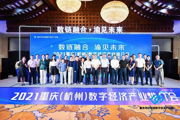 “數(shù)鏈融合·渝見(jiàn)未來(lái)”——2021重慶(杭州)數(shù)字經(jīng)濟(jì)產(chǎn)業(yè)推介會(huì)現(xiàn)場(chǎng)。重慶市區(qū)塊鏈數(shù)字經(jīng)濟(jì)產(chǎn)業(yè)園管委會(huì)供圖