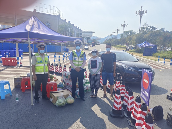 人民網(wǎng)重慶8月3日電 2日下午,一輛小車駛進江津區(qū)三界收費站,停在了交通管制卡口處。車上下來兩個年輕人,將相關物資交到卡口民警的手中便匆匆離開。民警們拆開紙箱子后發(fā)現(xiàn),里面除了防護服、西瓜等物資,還有一封手寫的信,題目是《致抗疫一線所有的戰(zhàn)士們》。