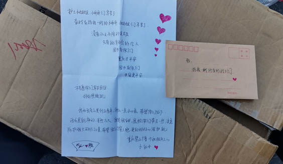 “這么熱的天他們專門送過來,還有這樣一封情真意切的信,真的被他們的愛心感動。這些物資我們將轉交到雙福衛(wèi)生院,這封信希望更多抗疫一線工作者能夠看到。”周思倫說。