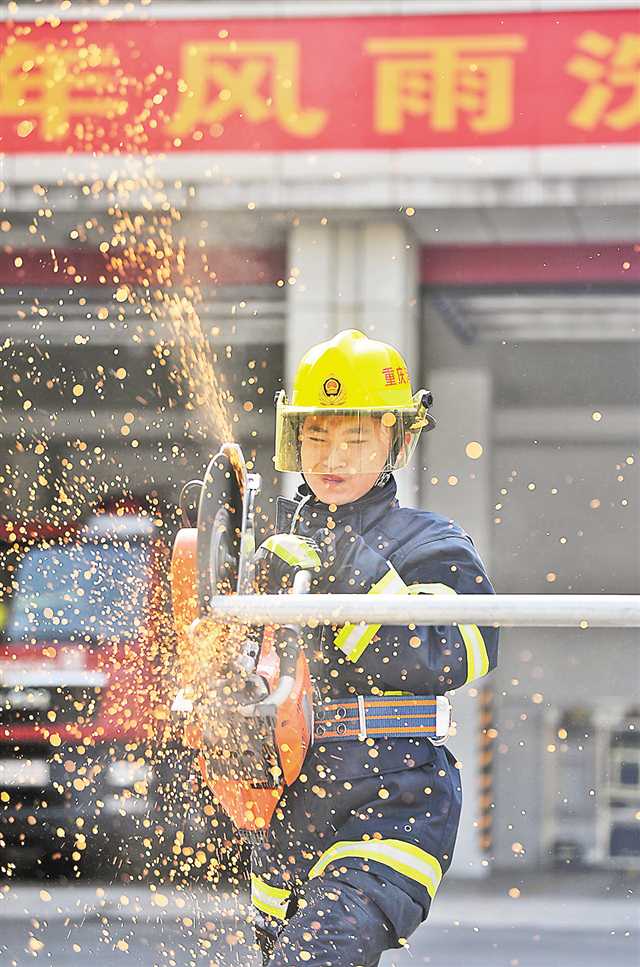 8月2日,南岸區(qū)消防隊(duì)員正在高溫下訓(xùn)練。特約攝影 郭旭/視覺重慶