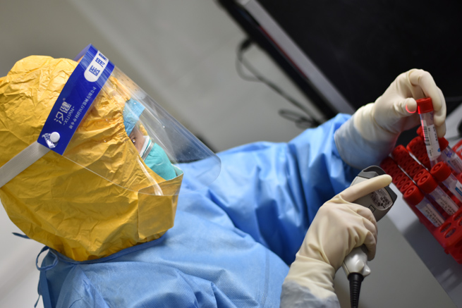 重慶市人民醫(yī)院黨員突擊隊隊員開展核收、分揀標本工作。重慶市衛(wèi)健委供圖