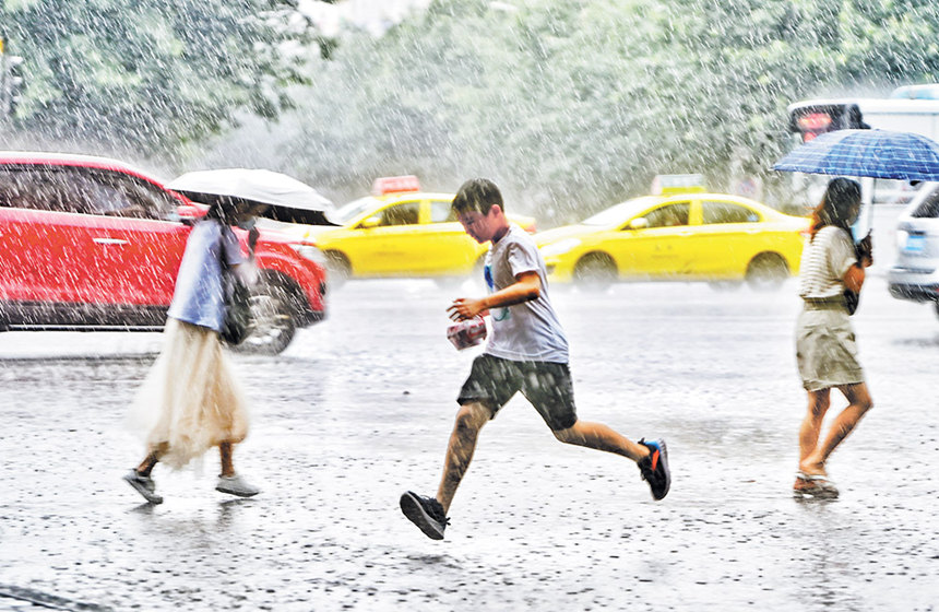 8月5日下午,南岸區(qū)騰龍大道,市民冒雨前行。當日白天,我市大部地區(qū)多云到晴,局部地區(qū)出現(xiàn)陣雨或雷雨,其中,兩江新區(qū)龍頭寺公園達暴雨級別。江北、渝北、南岸、九龍坡、江津、墊江、開州等8個區(qū)縣的局部地區(qū)出現(xiàn)8至9級陣性大風。