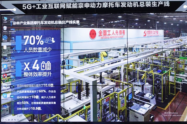 5G+工業(yè)互聯(lián)網(wǎng)賦能宗申動力摩托車發(fā)動機(jī)總裝生產(chǎn)線。許琳佩攝