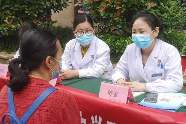 進(jìn)小區(qū)為社區(qū)居民義診、普及健康知識(shí)。兩江新區(qū)第一人民醫(yī)院供圖
