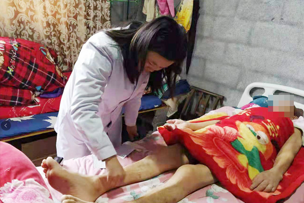 劉美婷到患者家中進(jìn)行康復(fù)治療。江北區(qū)中醫(yī)院供圖