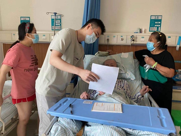 第一稅務(wù)所干部為住院老人講解房屋產(chǎn)權(quán)過戶流程。璧山區(qū)黨史學(xué)習(xí)教育領(lǐng)導(dǎo)小組辦公室供圖