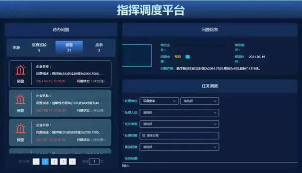 屏幕上,所有監(jiān)管排污企業(yè)相關(guān)數(shù)據(jù)一目了然:化學(xué)需氧量(COD)、氨氮(NH3-N)、懸浮物(SS)、pH值、溶解性總固體(TDS)等監(jiān)測因子參數(shù)實(shí)時更新,一旦某個數(shù)據(jù)出現(xiàn)超標(biāo),系統(tǒng)立即就會發(fā)出預(yù)警,指揮中心即可迅速響應(yīng)采取措施。