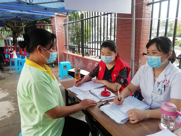 “看到前兩天來接種的市民從醫(yī)院門口排到了新洲大道,醫(yī)務(wù)人員穿著防護(hù)服忙來忙去的身影,我很希望能為他們做一點(diǎn)志愿服務(wù),也是老楊群工志愿精神的實(shí)踐!痹诳吹竭@樣的場(chǎng)景之后,曾永宏當(dāng)天晚上就與衛(wèi)生院相關(guān)領(lǐng)導(dǎo)進(jìn)行溝通協(xié)調(diào),并在微信群里號(hào)召老師們參與這次志愿活動(dòng),老師們也積極響應(yīng)。