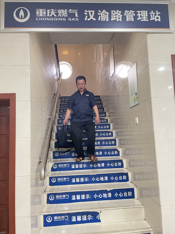 8月13日,重慶燃?xì)鉂h渝路管理站維修工彭龍學(xué)提上維修包前往現(xiàn)場。重慶燃?xì)饧瘓F(tuán)供圖