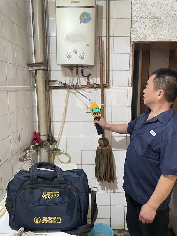 彭龍學(xué)逐一排查漏氣點(diǎn)。重慶燃?xì)饧瘓F(tuán)供圖
