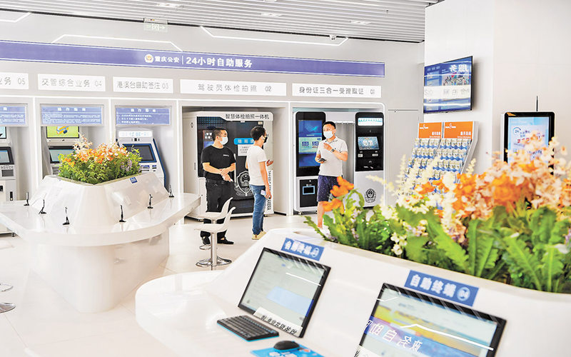 圖為8月10日晚,市民在楊家坪商圈24小時(shí)智慧政務(wù)服務(wù)中心辦理業(yè)務(wù)。