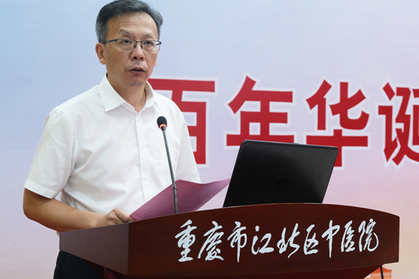 重慶市江北區(qū)中醫(yī)院黨委書(shū)記凌玲宣讀表彰名單。醫(yī)院供圖