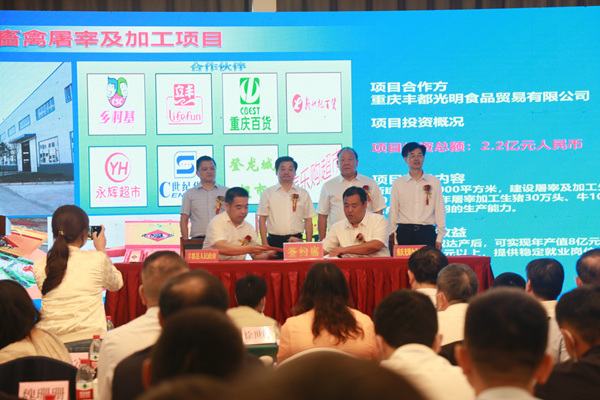 此次簽約的畜禽屠宰及精深加工項目,投資總額2.2億元,由重慶豐都光明食品貿(mào)易有限公司投資建設(shè)。將新建廠房18000平方米,建設(shè)屠宰及加工生產(chǎn)線10 條,配套建設(shè)5萬噸冷庫一座,具備年屠宰加工生豬30萬頭、牛10萬頭、家禽5000萬羽的生產(chǎn)能力。項目全面建成達產(chǎn)后,可實現(xiàn)年產(chǎn)值8億元以上,年利稅0.5億元以上,提供穩(wěn)定就業(yè)崗位 300個以上。