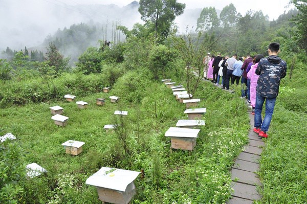 羅仁昌的種蜂場吸引人們前來參觀。江津區(qū)委宣傳部供圖