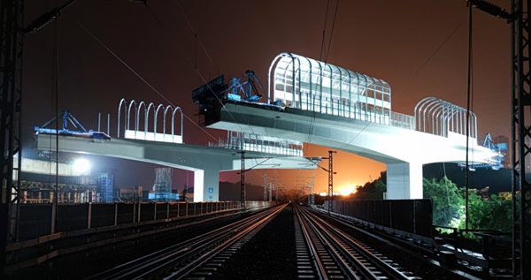 軌道交通5號線上跨渝貴高鐵橋梁轉(zhuǎn)體完成