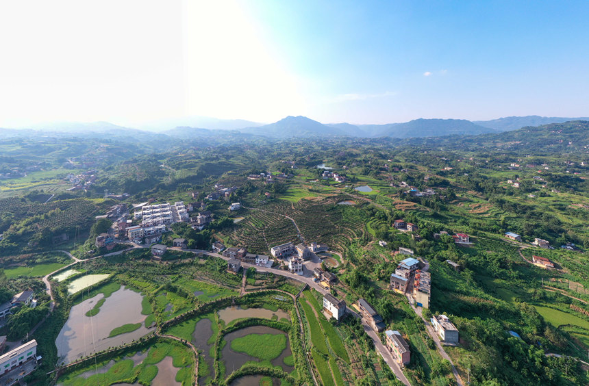 這里是重慶市開州區(qū)臨江鎮(zhèn)福德村,丘陵地勢(shì),讓當(dāng)?shù)厝恕俺霾蝗ァ保獾厝恕安幌脒M(jìn)”。以前,村里就只剩了干不動(dòng)農(nóng)活的老人和小孩,大片的土地成了荒地。