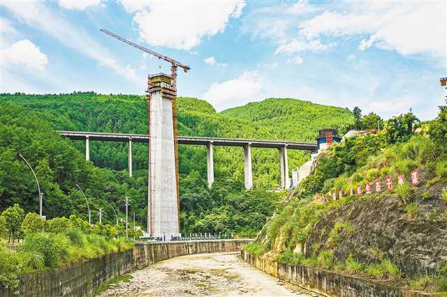 9月3日,渝湘高鐵重慶至黔江段石梁河雙線特大橋4號墩順利封頂。