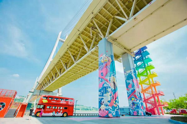 愛情文化長(zhǎng)廊充分利用生態(tài)景觀游線將愛情文化的元素串聯(lián)到整個(gè)長(zhǎng)廊中,以“大江之津 大愛之城”為主題,以長(zhǎng)江濱水帶為脈絡(luò),對(duì)橋墩、樓梯、綠化等環(huán)境進(jìn)行了微改造。