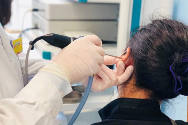 查看患者耳朵情況。重慶仁品耳鼻喉醫(yī)院供圖