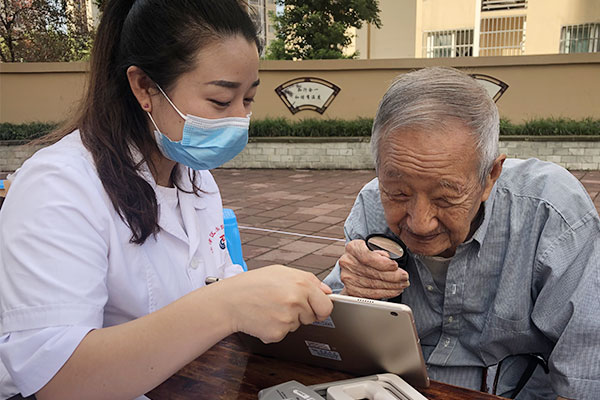 “爺爺,你覺得最近心情怎么樣呀?有沒有覺得心頭煩躁得很喲?”“沒有那些,幾十年都沒有和誰吵過架、紅過臉哦!闭{(diào)查現(xiàn)場(chǎng),94歲高齡的邱爺爺拿著隨身攜帶的放大鏡,認(rèn)真地配合工作人員的調(diào)查。工作人員也盡量采取通俗易懂的方式和老年人交流,通過詢問的方式,了解老年人的生活方式、認(rèn)知能力和現(xiàn)狀的評(píng)價(jià)及性格情緒特征等情況,同時(shí)進(jìn)行血壓、心率、血氧飽和度、上肢活動(dòng)能力等一般測(cè)量,以及生物樣本的采集。