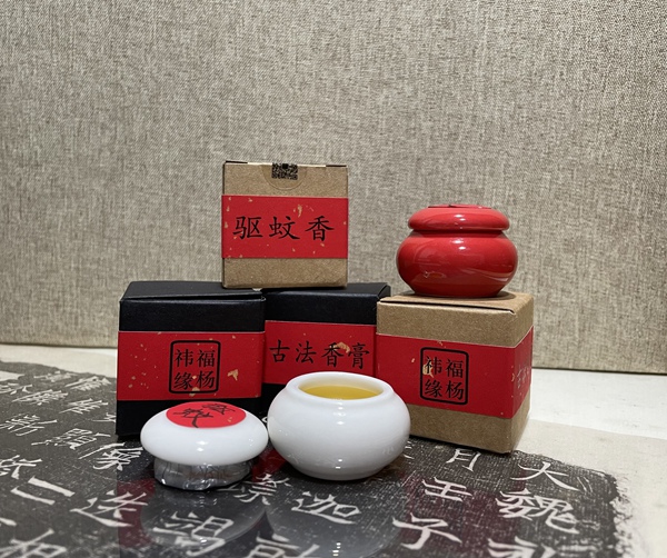 “金佛山中草藥文創(chuàng)系列香膏香盒器型源自我國(guó)古代妝盒器型,呈現(xiàn)獨(dú)屬中國(guó)的含蓄之美。香盒貯香,既是小而精的實(shí)用器,又是小中見(jiàn)大的雅器。香膏用完,香盒亦可作為工藝品保留!焙舷闫崴芊俏镔|(zhì)文化遺產(chǎn)傳承人周祎楊介紹,香膏選用金佛山中草藥薄荷、艾草、玉蘭、水仙等原料,配以白酒、山茶油、蜂蠟等,遵循古法,純手工低溫熬制而成。