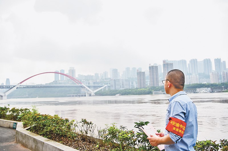 “十碼頭步道有塌方險(xiǎn)情,今晚喊話時(shí)一定要再次通知居民注意安全。”9月7日下午6點(diǎn)過,渝中區(qū)朝天門街道,社區(qū)志愿者劉昌友向前來接班的志愿者反復(fù)囑咐。受洪水過境影響,朝天門街道十碼頭臨江步道出現(xiàn)塌方,劉昌友發(fā)現(xiàn)險(xiǎn)情后第一時(shí)間上報(bào)。