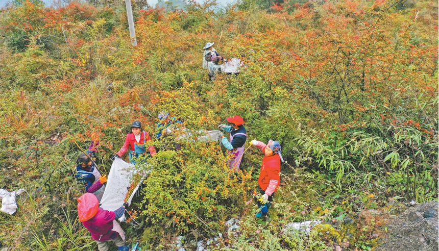 村民們正在采摘火棘果。通訊員 趙勇 攝/視覺重慶