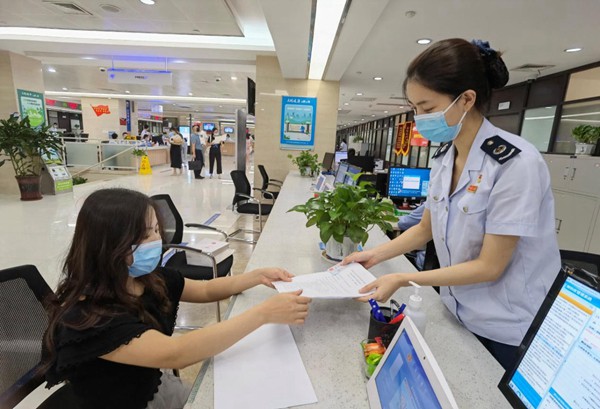 渝中區(qū)稅務(wù)局工作人員為納稅人辦理跨區(qū)(縣)遷移事項(xiàng)。何涵雯攝