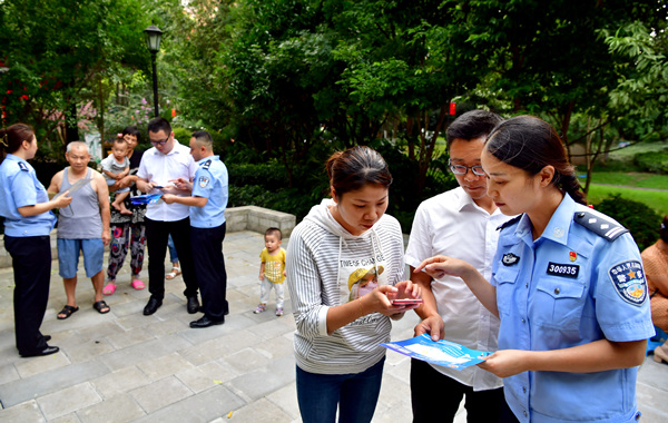 民警在社區(qū)宣傳易聯(lián)調(diào)小程序。周舸攝