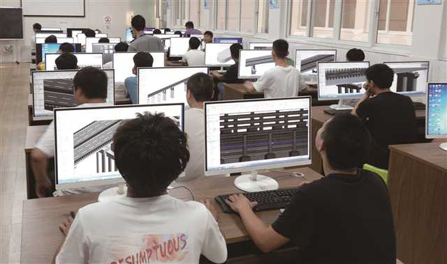 學(xué)生在渝交測(cè)繪公司BIM中心開展橋梁BIM建模準(zhǔn)崗式實(shí)訓(xùn)