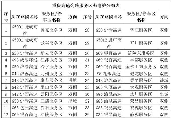 服務(wù)區(qū)充電站分布。重慶高速集團供圖