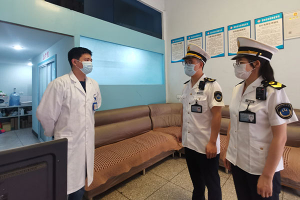 執(zhí)法人員開展現(xiàn)場執(zhí)法工作,全程使用執(zhí)法記錄儀。石柱縣衛(wèi)生健康綜合行政執(zhí)法支隊供圖