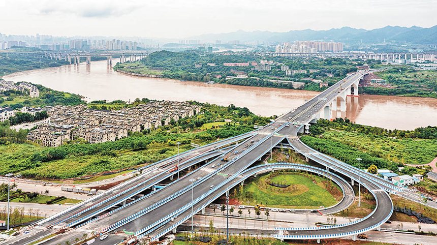 日前,進入施工收尾階段的禮嘉嘉陵江大橋。