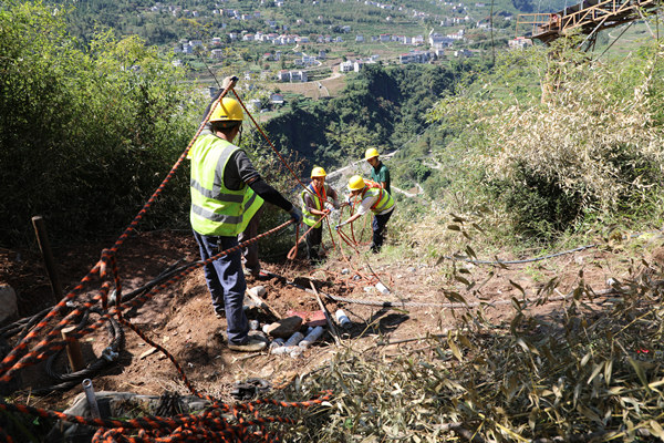 “地勢(shì)高、地形險(xiǎn),施工人員要先在山頂固定錨點(diǎn),用鋼繩拉住挖機(jī),防止發(fā)生次生災(zāi)害!笔208地質(zhì)隊(duì)地災(zāi)防治研究院專家梁峰介紹,每個(gè)錨點(diǎn)由3根鋼柱組成,每根鋼柱打入地下6米以上。目前,所有錨點(diǎn)已建好,所需設(shè)施、設(shè)備、人員等已安排到位,從21日開(kāi)始,挖機(jī)和爆破工具將進(jìn)場(chǎng)進(jìn)行危巖清理作業(yè)。