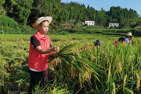 豐都縣稅務(wù)局駐村工作隊(duì)隊(duì)員湛林收割水稻。胡傳平攝
