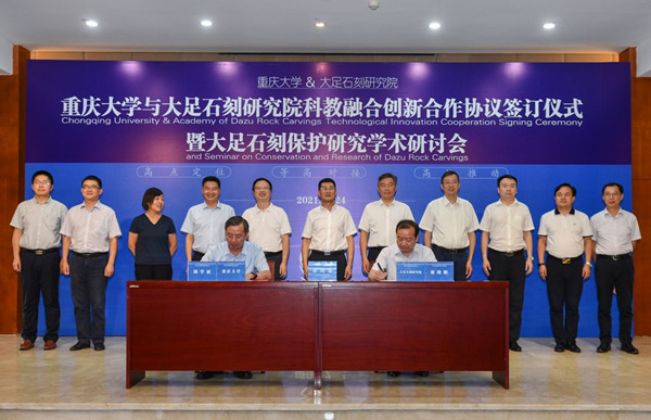重慶大學(xué)與大足石刻研究院簽訂科教融合創(chuàng)新合作協(xié)議。鄒樂攝