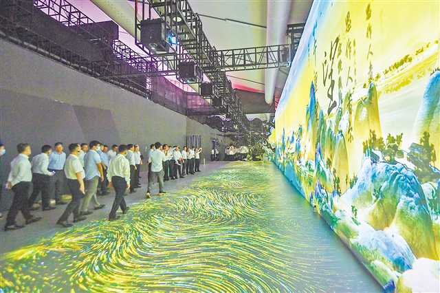 館內(nèi),“序廳”“自然山水”“歷史文化名城”“總體規(guī)劃”“高質(zhì)量發(fā)展”“高品質(zhì)生活”“內(nèi)陸開放高地”“山清水秀美麗之地”8個(gè)主題展區(qū),讓領(lǐng)導(dǎo)干部們駐足停留。虛擬的燙火鍋場景,留住鄉(xiāng)愁的吊腳樓造型……老重慶的生活在這里被生動(dòng)復(fù)原。