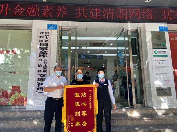 客戶為石柱支行送錦旗表示感謝。工行重慶石柱支行供圖