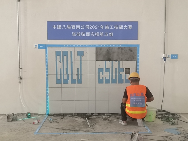 瓷磚貼面比賽現(xiàn)場(chǎng)。中建八局西南公司供圖