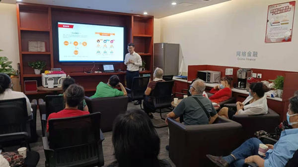 據(jù)了解,本次活動邀請了20余名中老年客戶參加。活動期間,該支行通過發(fā)放宣傳折頁、播放PPT等形式對金融知識進(jìn)行全面宣傳。期間,廣發(fā)證劵公司客戶經(jīng)理針對基金投資向大家作專業(yè)講解,再由支行理財經(jīng)理近距離為網(wǎng)點客戶提供金融咨詢服務(wù)。支行理財經(jīng)理耐心回答大家日常生活中遇到的金融問題,將日常生活中需要了解的金融知識、金融技能傳授給大家。同時,現(xiàn)場工作人員還對客戶近期關(guān)注的利率市場化、人民幣反假、詐騙案件防控等專題進(jìn)行細(xì)致講解,進(jìn)一步幫助老年客戶提高金融風(fēng)險防范意識。