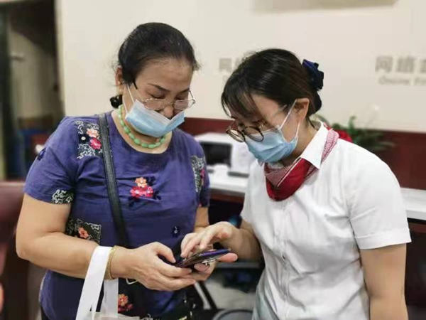 工作人員教客戶使用手機銀行。廣發(fā)銀行重慶分行供圖