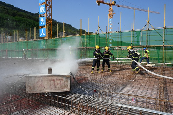 消防應(yīng)急演練現(xiàn)場。中建五局供圖